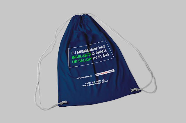 The t-shirt has a similar distribution effect to badges. Again, they are tangible, interactive and highly visible. The voters who wear the t-shirt become a walking promotion, a free source of advertising. The t-shirt is highly collectable and a piece of collateral that people love to collect to show support for the "Remain" camp.